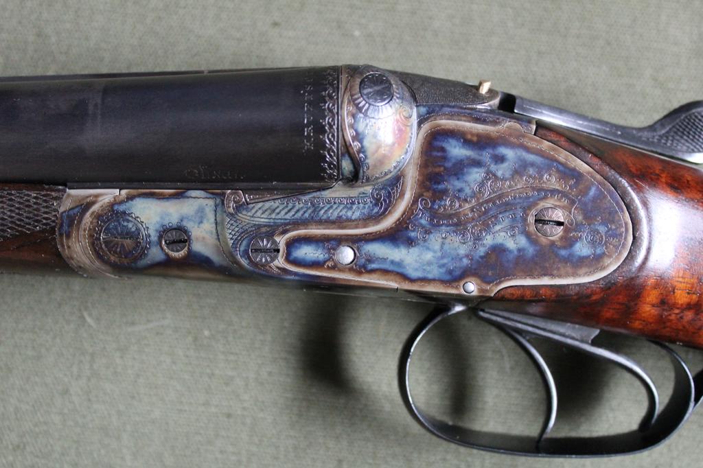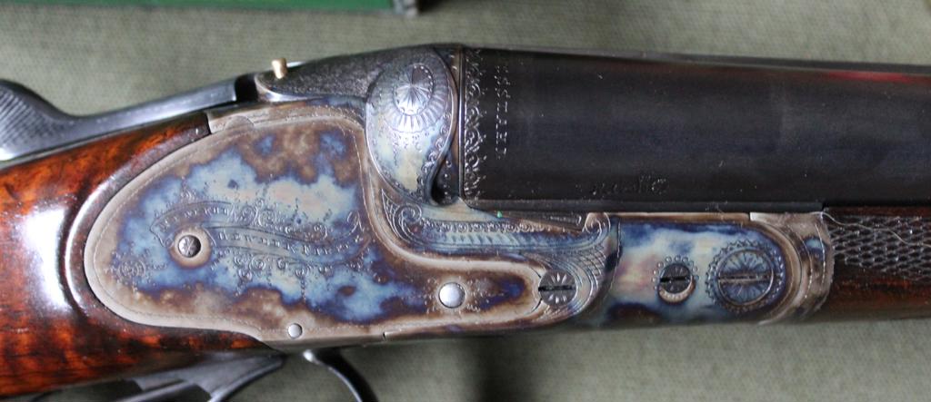 Following is a side by side shotgun with both Thieme & Schlegelmilch patented features, the nose lock up and the action with side plates.
