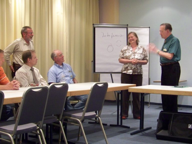 Dietrich was always in his element teaching or leading others. From left: standing-Axel Eichendorff, seated: Max Ern, Bill Loos, standing: Evelyn Ern and Dietrich.