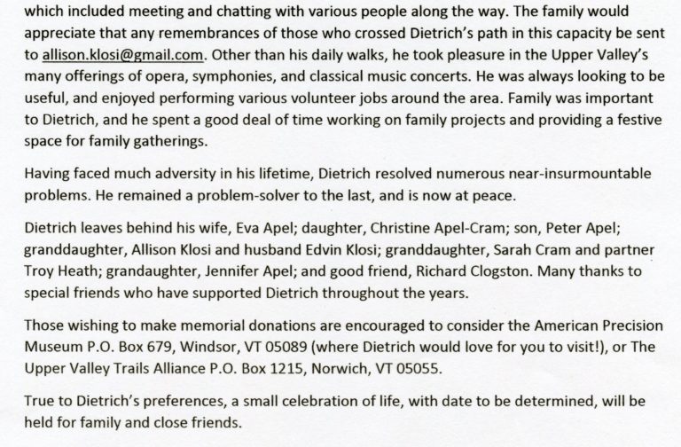 I got to know Dietrich personally for the first time in 1982 and since then, I have always felt the greatest respect and admiration for the strong but modest man he was. What started out as a mere business relationship turned into a very good and personal friendship over the years. During the many hours we got to spend together at trade fairs and later in his house in New Hampshire, a picture of a hard working man grew in my head. Dietrich was always living under the pressure of utmost economy and with great thoughtfulness in business as well as private matters. Influenced and shaped by the consequences of the Second World War and the disastrous Nazi regime which affected his own family, his struggle continued in the confrontation with his uncle after his emigration to the USA.