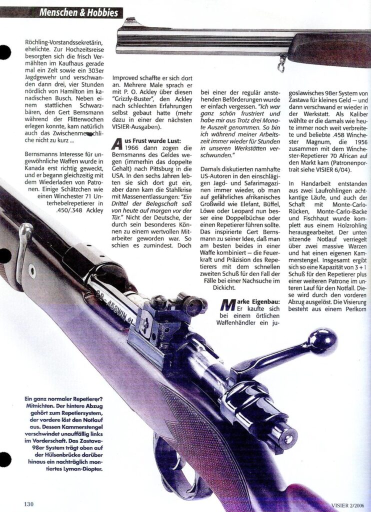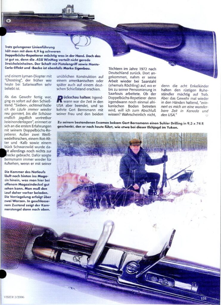 Following is a portion of an article from the Feb. 2006 issue of the German gun magazine Visier about a one off over-under Bolt Action Double Rifle, which I found in Dietrichs files.