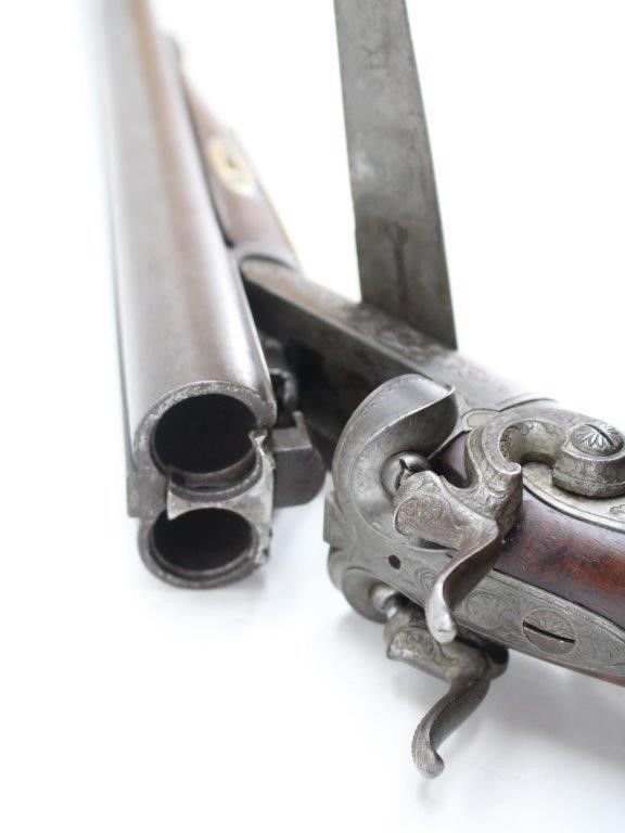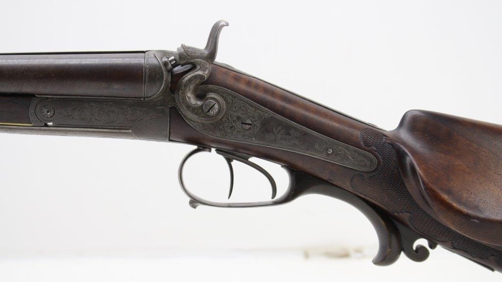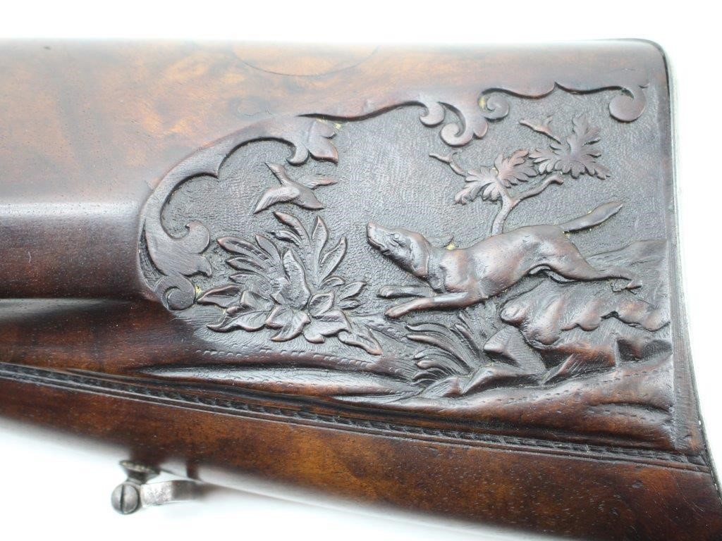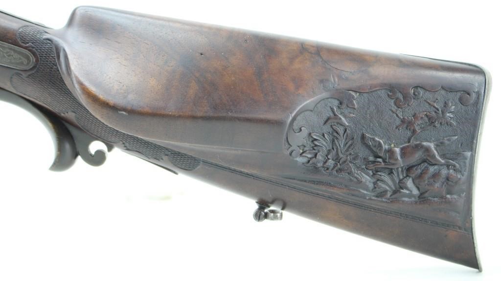 Eduard specialized in Target firearms but also sold sporting firearms of all types. Many of these were probably sourced from the larger makers in Suhl and Zella St. Blasii and Mehlis and finished to his customers wishes. Following are images of some of his products. First we have two side by side shotguns.