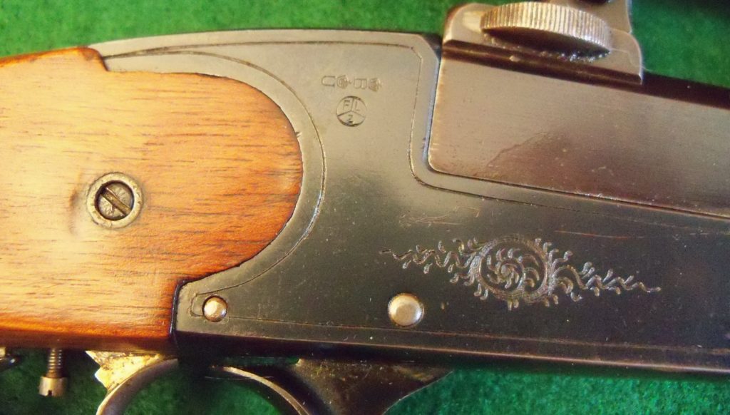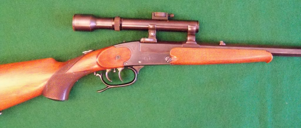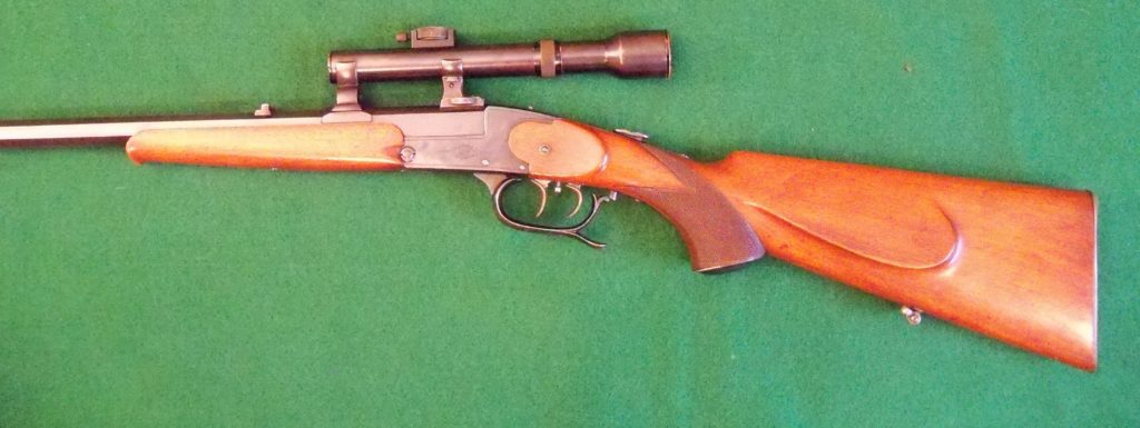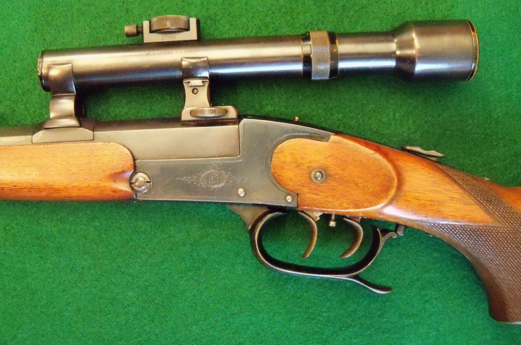 The series of ‘Tell’ rifles were made until 1936, when it was superseded by the 36 and 37 dual-purpose drop barrel models. The differance can be seen between the old and the new types of ‘Tell’ from the beginning of the 1920’s. The most important characteristic: a sliding safety catch is employed instead of a winged safety catch. These light, handy weapons, conceived as stalking and sport rifles were available in many differant calibers.”