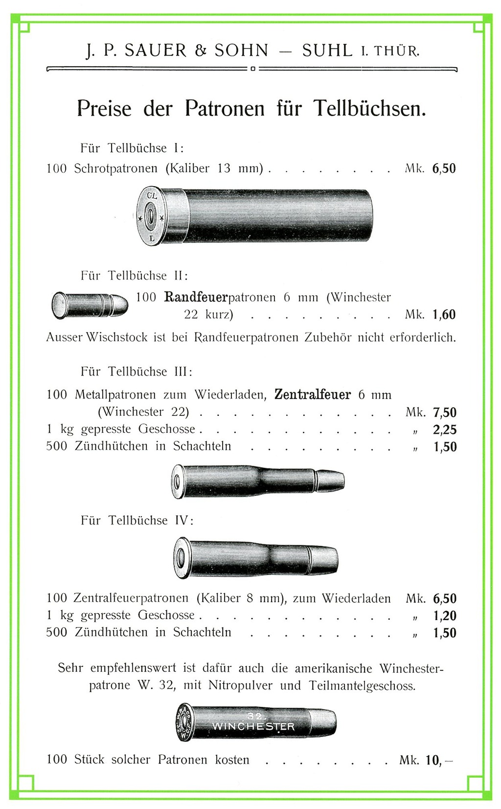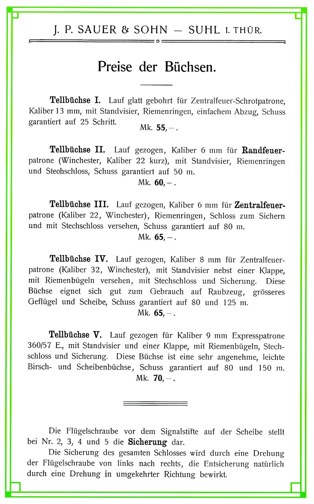The following images are from a post 1920 J. P. Sauer & Sohn Catalog and shows the later version of the Tell model.