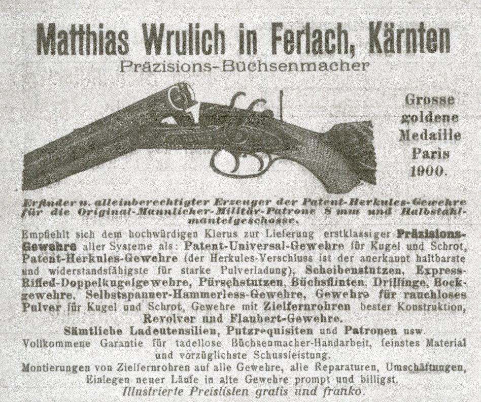 The following advertisement was found in a 1912 Ferlach Almanac.
